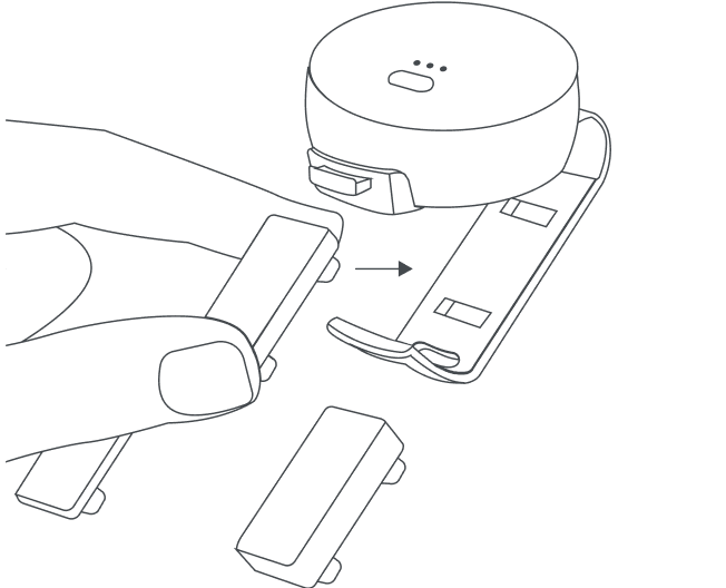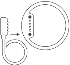 Plug charging cable to the magnetic socket in the back of the device, charging can take up to 2 hours (till the green led gets solid)