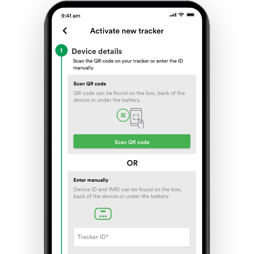 Activate your Device Add your tracker ID and IMEI, you can find it on the box or on the side of the tracker. Choose and pay for your subscription. Enter your pet’s name, info & picture. (Subscription pays for your data plan to send live location data to our servers via the cellular network, the costs of maintaining our servers, infrastructure and tech support).